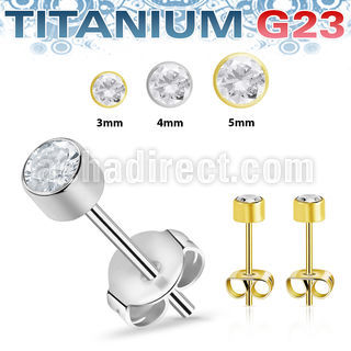 One Pair High Polish and PVD Plated Titanium Ear Studs Bezel Set CZ Stone