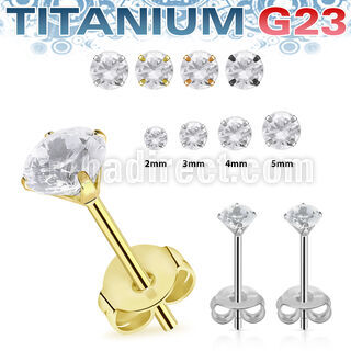 One Pair of High Polish and PVD Plated Titanium Ear Studs with CZ