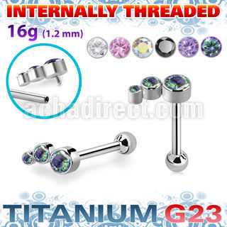 8. uhein26 titanium g23 barbell three baguette cz ball internal