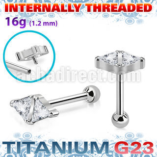 Titanium Barbell with Double Triangle Shape CZ Stones