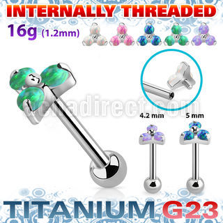 High Polished Titanium Barbell Triangle Design Top with Opal
