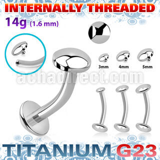 Titanium G23 Internally Threaded Floating Belly Convex Labret with 3mm to 5mm Flat Dome Shaped Top