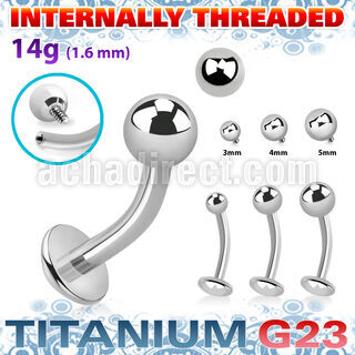 Titanium G23 Internally Threaded Floating Belly Convex Labret with 3mm to 5mm Plain Ball Top