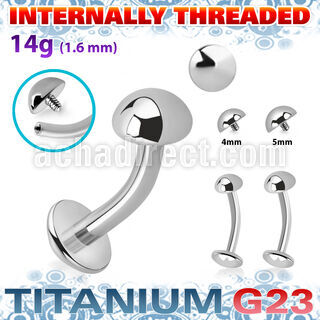 Titanium G23 Internally Threaded Floating Belly Convex Labret with 4mm and 5mm Half Ball Shaped Top