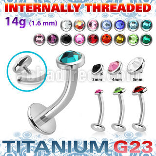 Titanium G23 Internally Threaded Floating Belly Convex Labret with 3mm to 5mm Bezel Set Flat Crystal Top