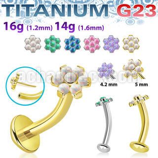 Titanium G23 Threadless Floating Belly Convex Labret with Push Pin Top in Flower Design with Opals