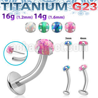 Titanium G23 Threadless Floating Belly Convex Labret with Push Pin Top with Prong Set Cabochon Synthetic Opal