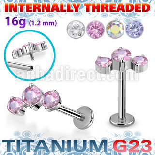 9. ulbin26 titanium g23 labret 16g three baguette cz internal