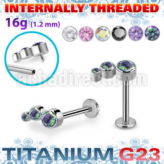 4. ulbin26 titanium g23 labret 16g three baguette cz internal