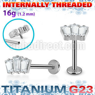 Titanium Labret with Three Prong Set Baguette Shape CZ Stones
