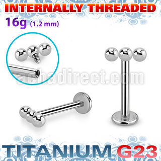Titanium Internally Threaded Labret, Three Balls Design Top