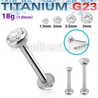 Titanium Labret with Threadless Top with CZ Round Stone