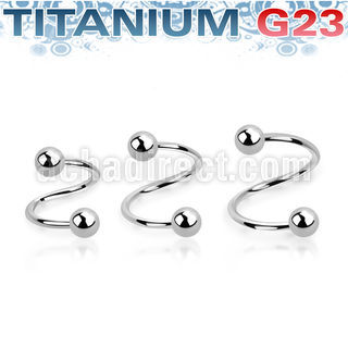 High Polished Titanium Spiral 0.8mm (20g), Two 3mm Balls