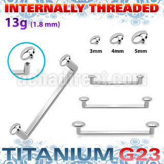 Titanium Internally Threaded Industrial Surface Barbell 90° Angle with Flat Dome Shaped Tops
