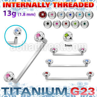 Titanium Internally Threaded Industrial Surface Barbell 90° Angle with Ferido Glued Multi Crystals with Colored Dot