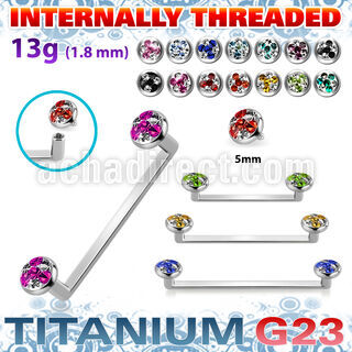Titanium Internally Threaded Industrial Surface Barbell 90° Angle with Ferido Glued Multi Crystals with a Tri Star Design