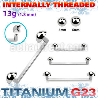 Titanium Internally Threaded Industrial Surface Barbell 90° Angle with Half Balls