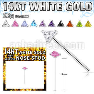 14k White Gold "Bend it yourself" Nose Stud with CZ Stone