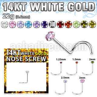 7. gszm3 14k gold nose screw 22g prong set 3mm round color cz