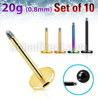 Set of 10 Pcs. PVD Plated 316L Steel Labret Posts