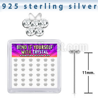 925 Silver Bend it Yourself Nose Studs Butterfly Crystal Top