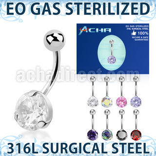 EO Gas Sterilized Steel Belly Banana with 8mm CZ Stone and Steel Ball